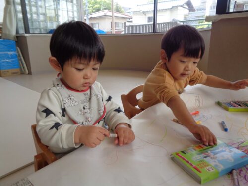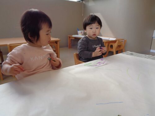 たくさんの色を使ってお絵描きを楽しんでいました。