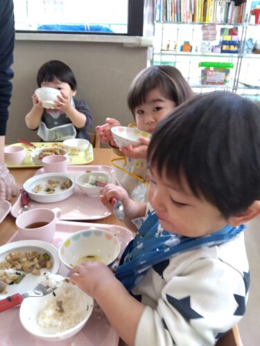 みんなで食べる給食美味しいですね😊
