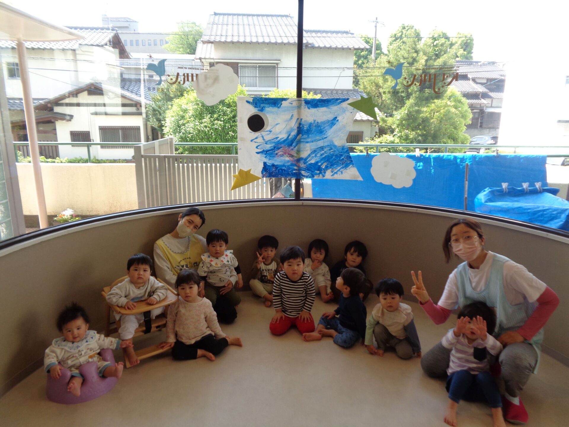 みんなでお絵描きしたこいのぼりが元気に泳いでいますね✨🎏