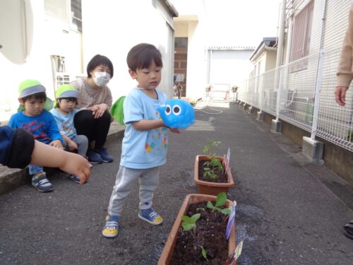 最後にみんなで「野菜さん大きくなってね」とおまじないをかけました♩