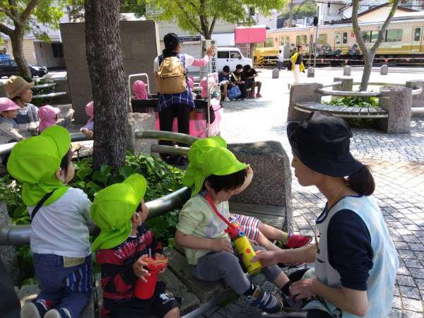 五条駅広場まで行ってみんなで一休みをしました!