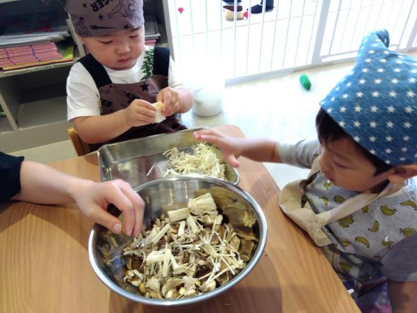 こども達がさいてくれた きのこは、きのこごはんになりました!