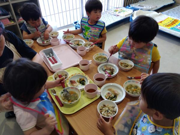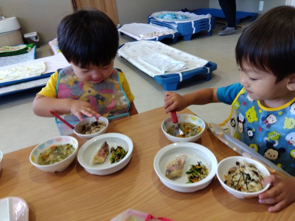 今日はあめ組(2歳児)のこども達は食育活動の日です!