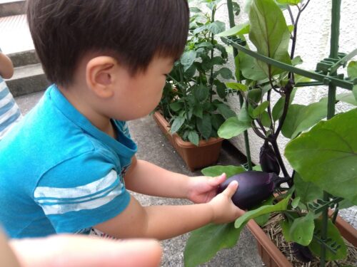 こども達は、収穫している時 食事に出てくる時に 見ている