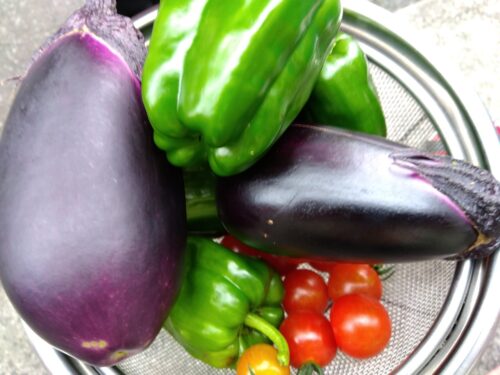とまと・ピーマン・なす の中を真剣な表情で観察していました。