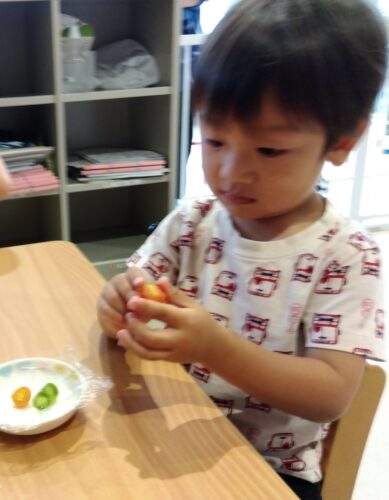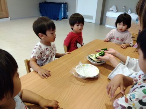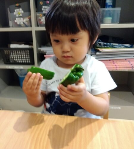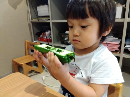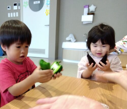 野菜の中にある『たね』に興味津々でよーく見ていました。