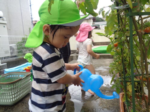 冷たいお水をおすそ分け”野菜さん大きくなってね~”