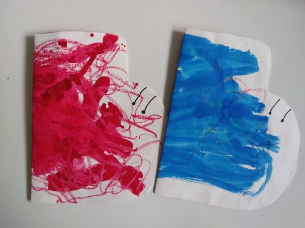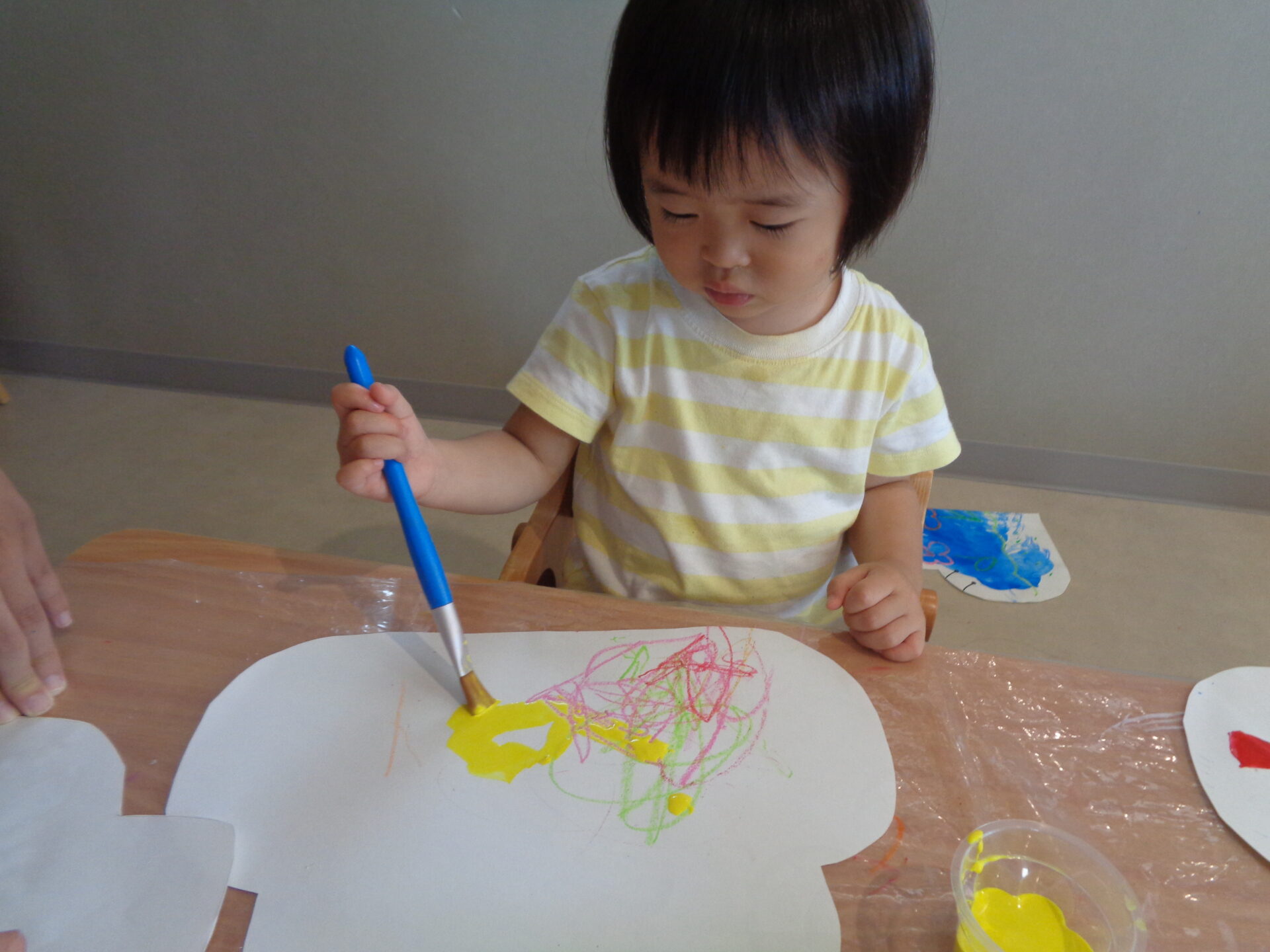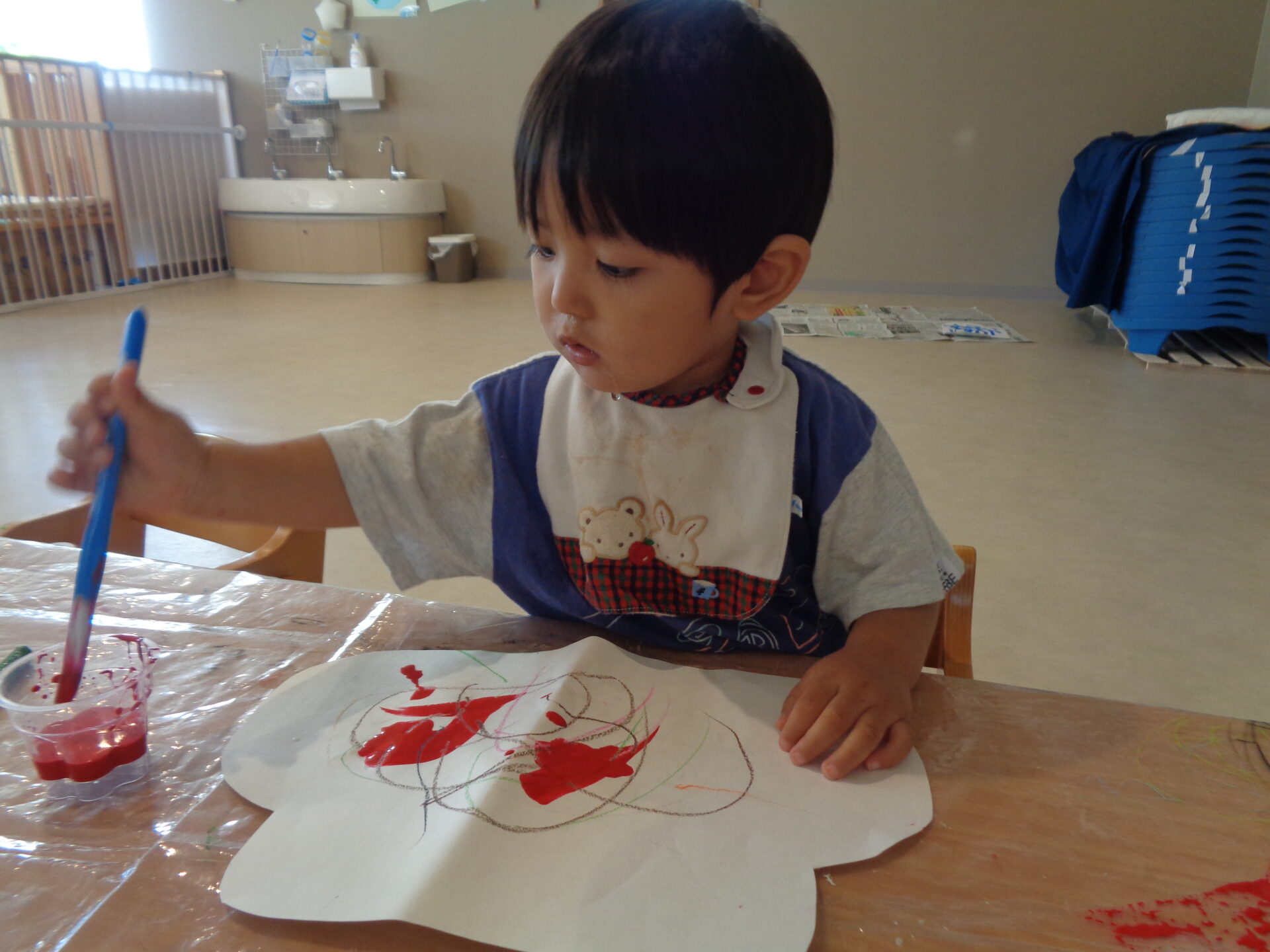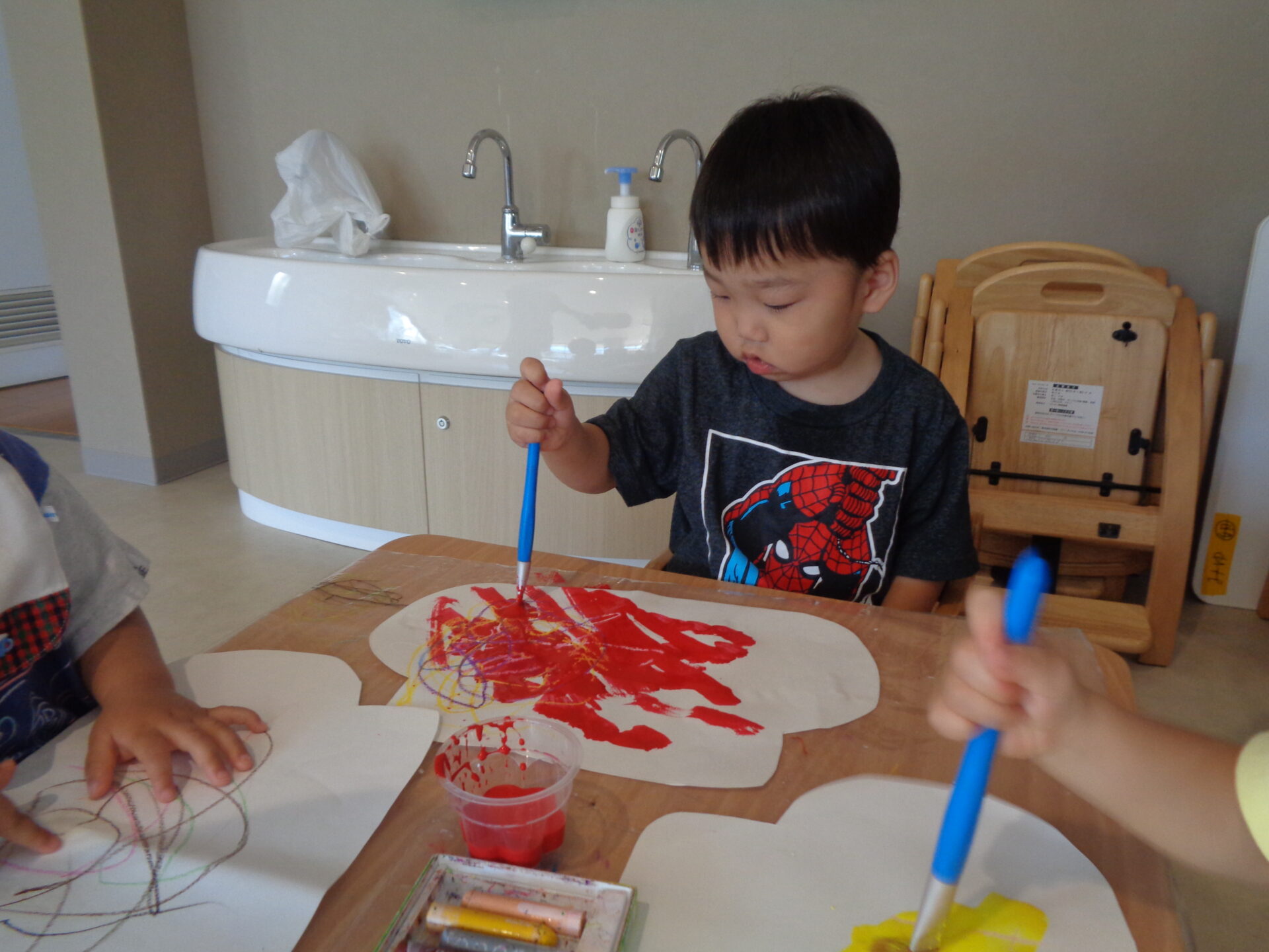 靴の模様を描いた上に好きな色の絵の具を塗ってみました(^▽^)/