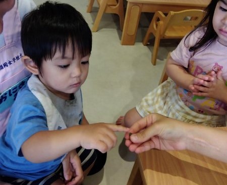 友だちが触っている様子を見て触ってみる気持ちになった子、
