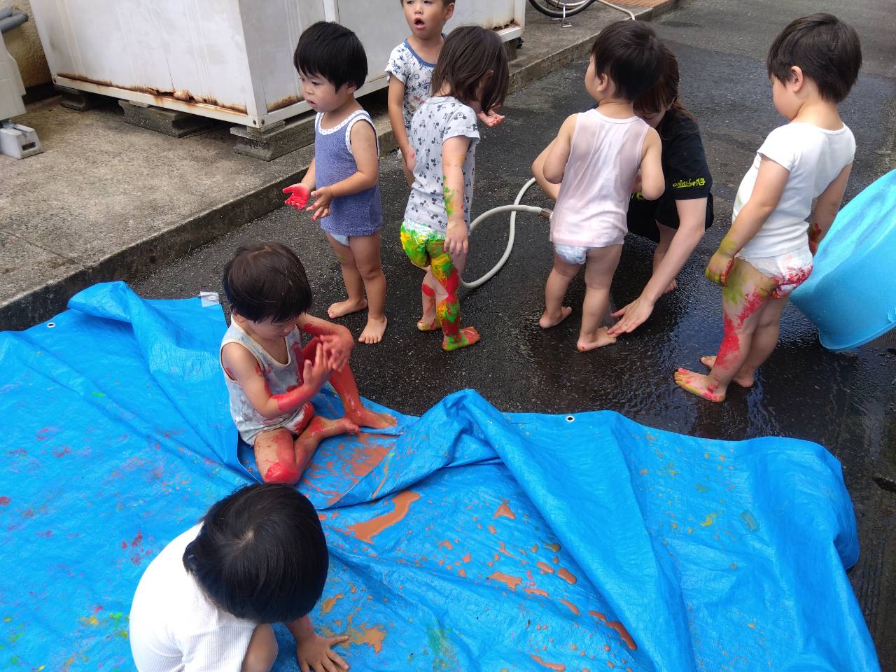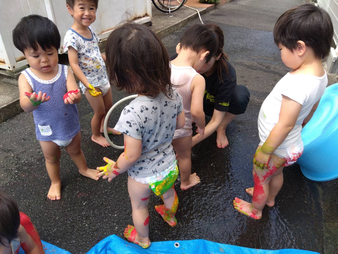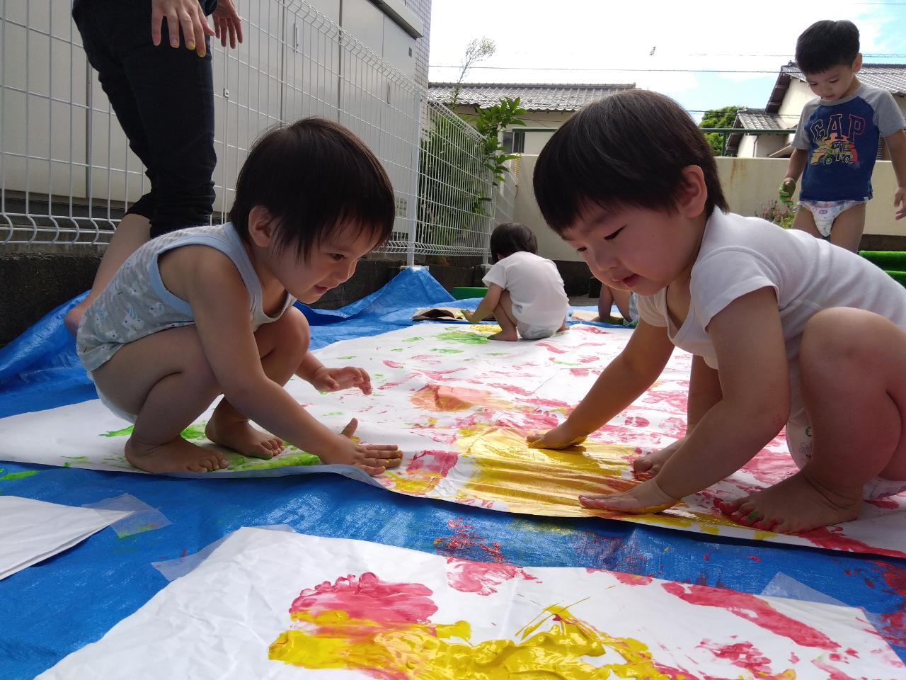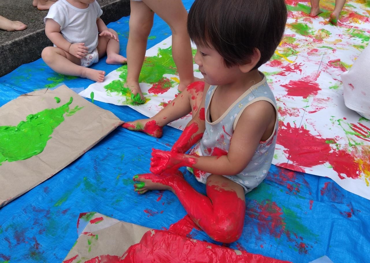 絵の具を目の前にすぐに飛びつき、思い思いに遊び始めていました✨