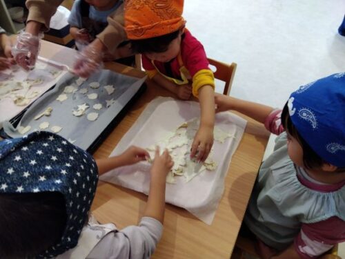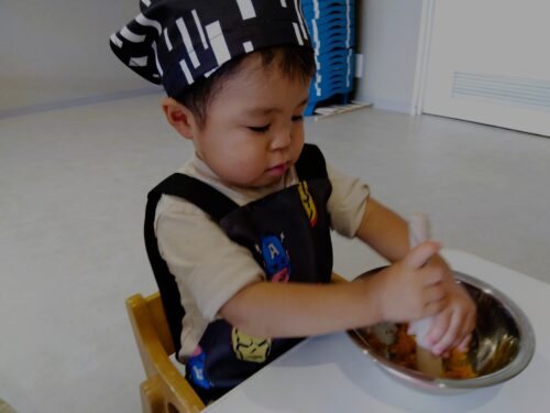 食育の一環としてクッキングも行っています。食育活動を通して食べ物への感謝の気持ちを育んでいきます。色々な経験をしながら成長していくこども達。次回も楽しみにしていてくださいね。