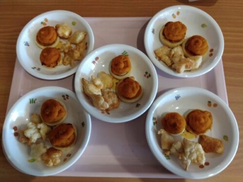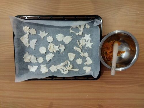 こども達が型抜きしたものとカボチャをすり潰したものがこちら✨