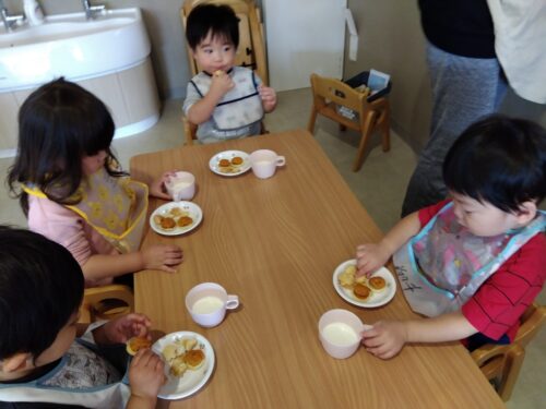 お昼寝が終わったら、 楽しいおやつの時間!