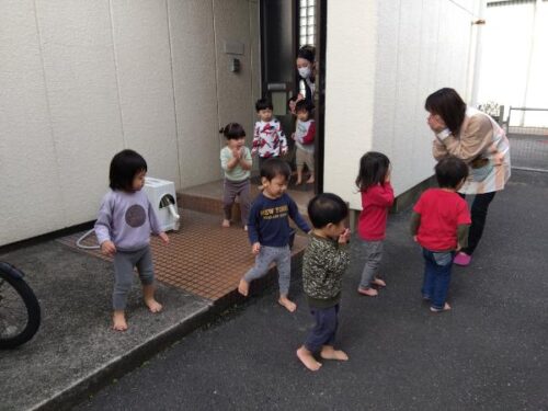 保育士の『 お・は・し・も 』の話をしっかり注目して聞いていたこども達。