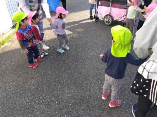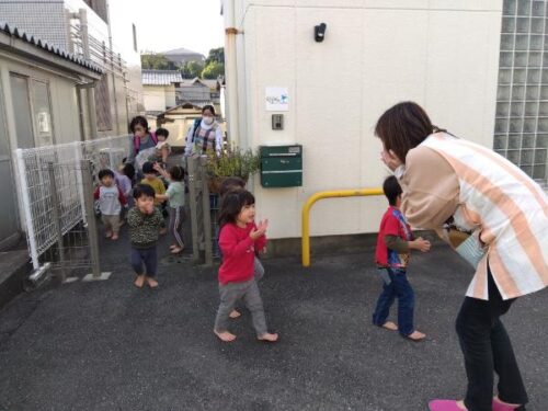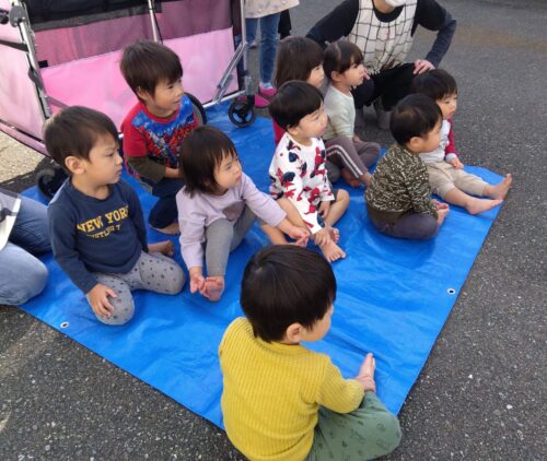 こども達を保育園の駐車場に落ち着いて誘導していきます。