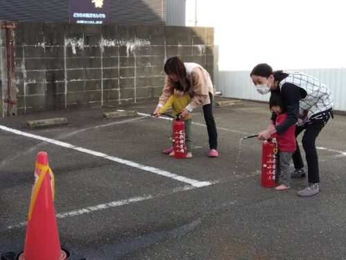 消防署から水消火器をお借りして行いました。