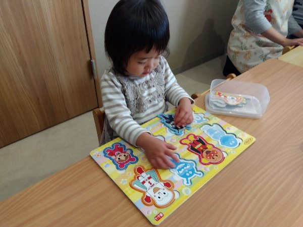 こども達は指先を上手に使って机上遊びを楽しんでいます。