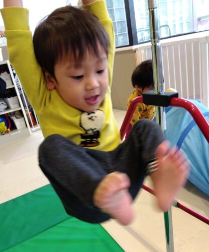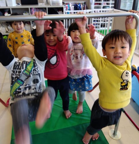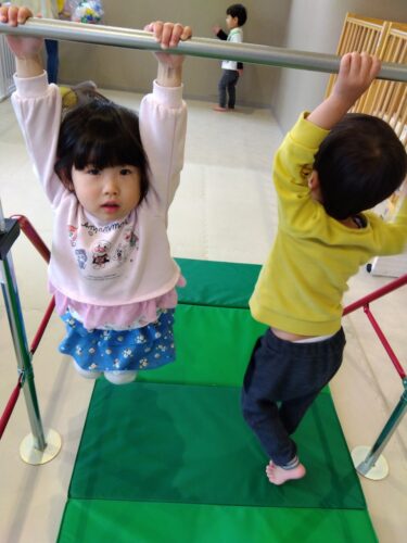 床から足を離して一人で鉄棒にぶら下がることができるようになりました✨