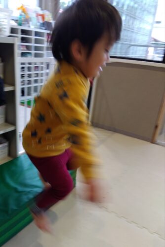 毎月、あめぐみ(2歳児)は体操教室で体を動かしています。