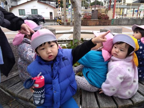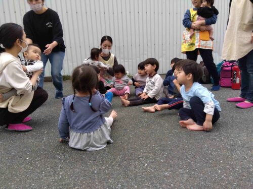五条駅前の広場で、落ち葉を拾ったりしてお散歩を楽しみました✨