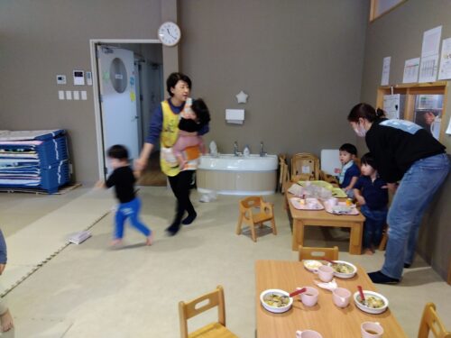 「隣のお家が火事です。逃げてください!」と保育士の声が聞こえてきました。