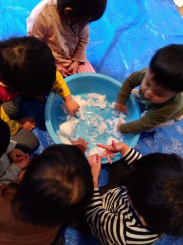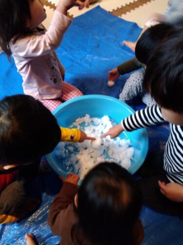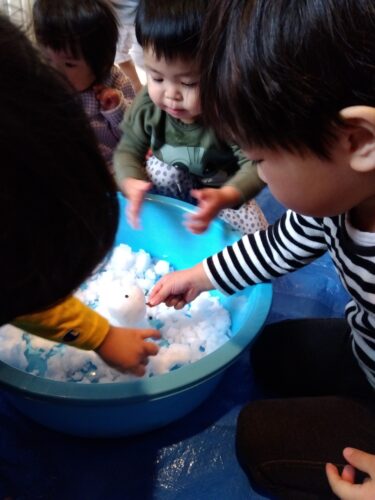 「ゆき」「さむいねー」と先生やお友だちと会話する声が聞こえてきました。