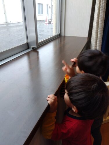 普段とは違う外の景色に興味津々😊