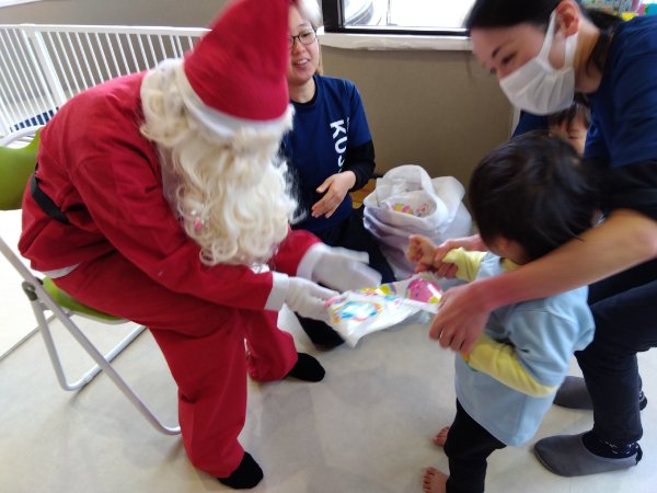 嬉しくて笑顔のこども達。中にはサンタさんを見て泣いてしまうこども達も・・・