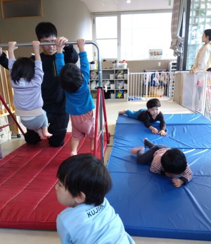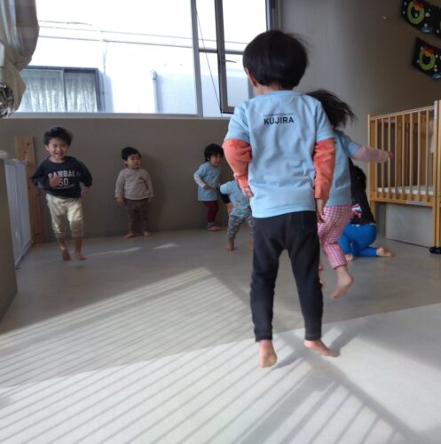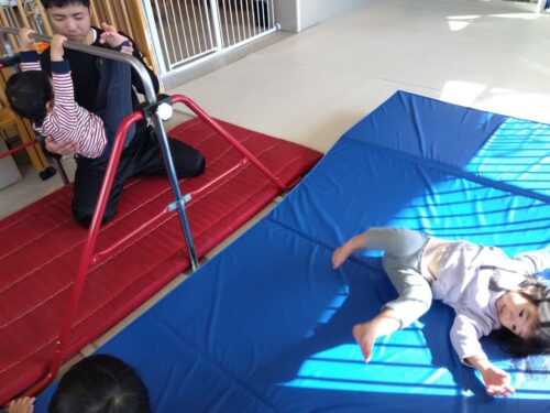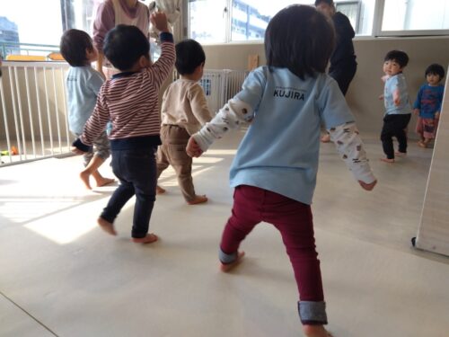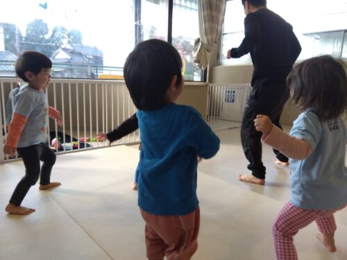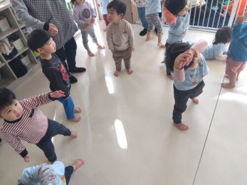 今日からあめ組(2歳児)と一緒に、だいち組(1歳児)も体操教室に参加することになりました✨