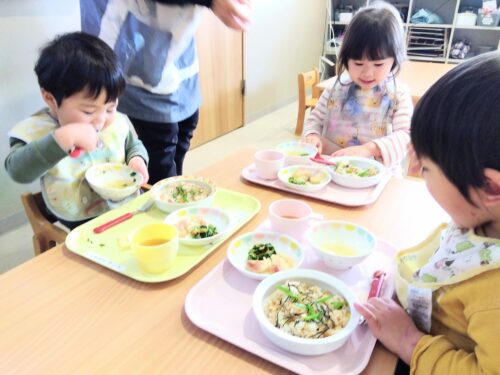 本来なら3月3日がひなまつりなのですが、当日は日曜日ということで園では本日行いました😊