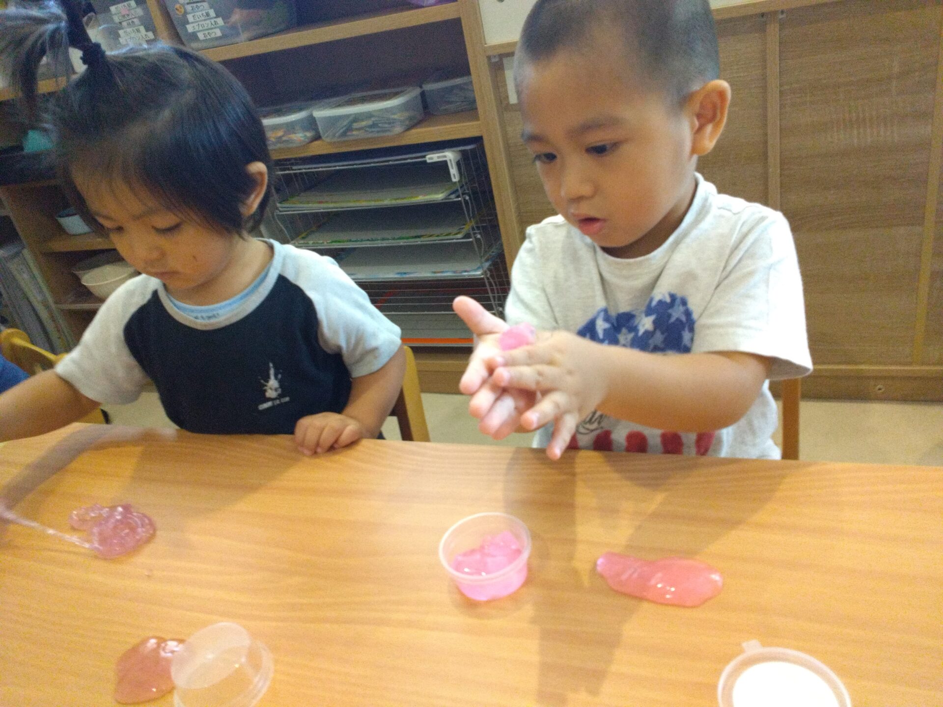 100円ショップのスライムは保存もでき、ベタつかず繰り返し遊べます😄