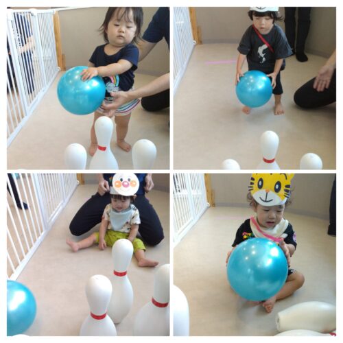ボールを転がして、うまくピンを倒せるかな?