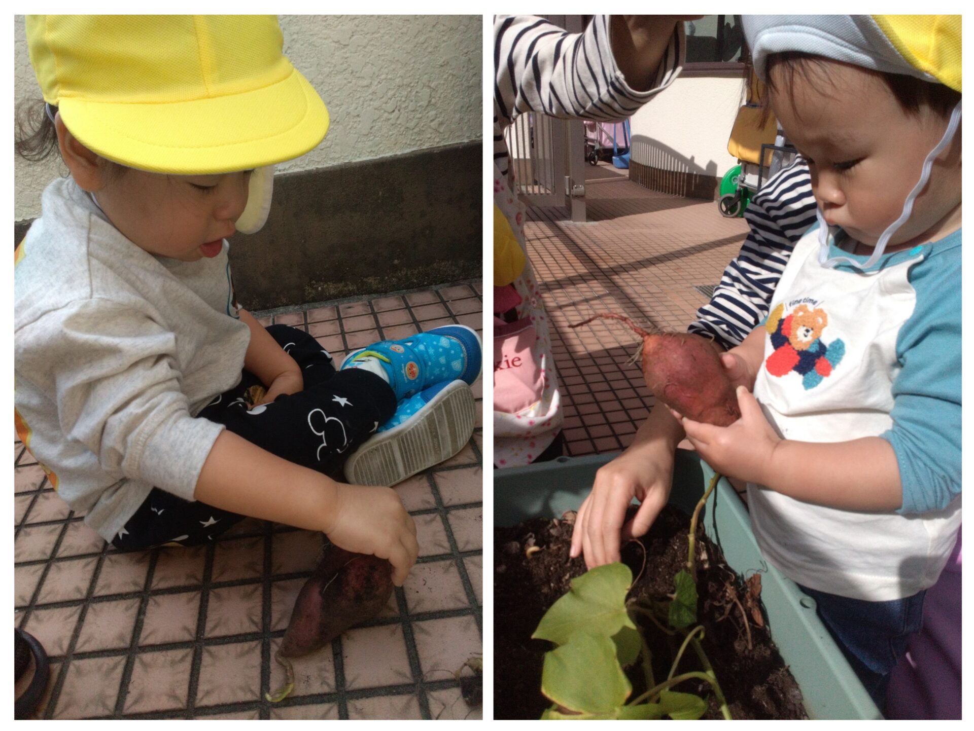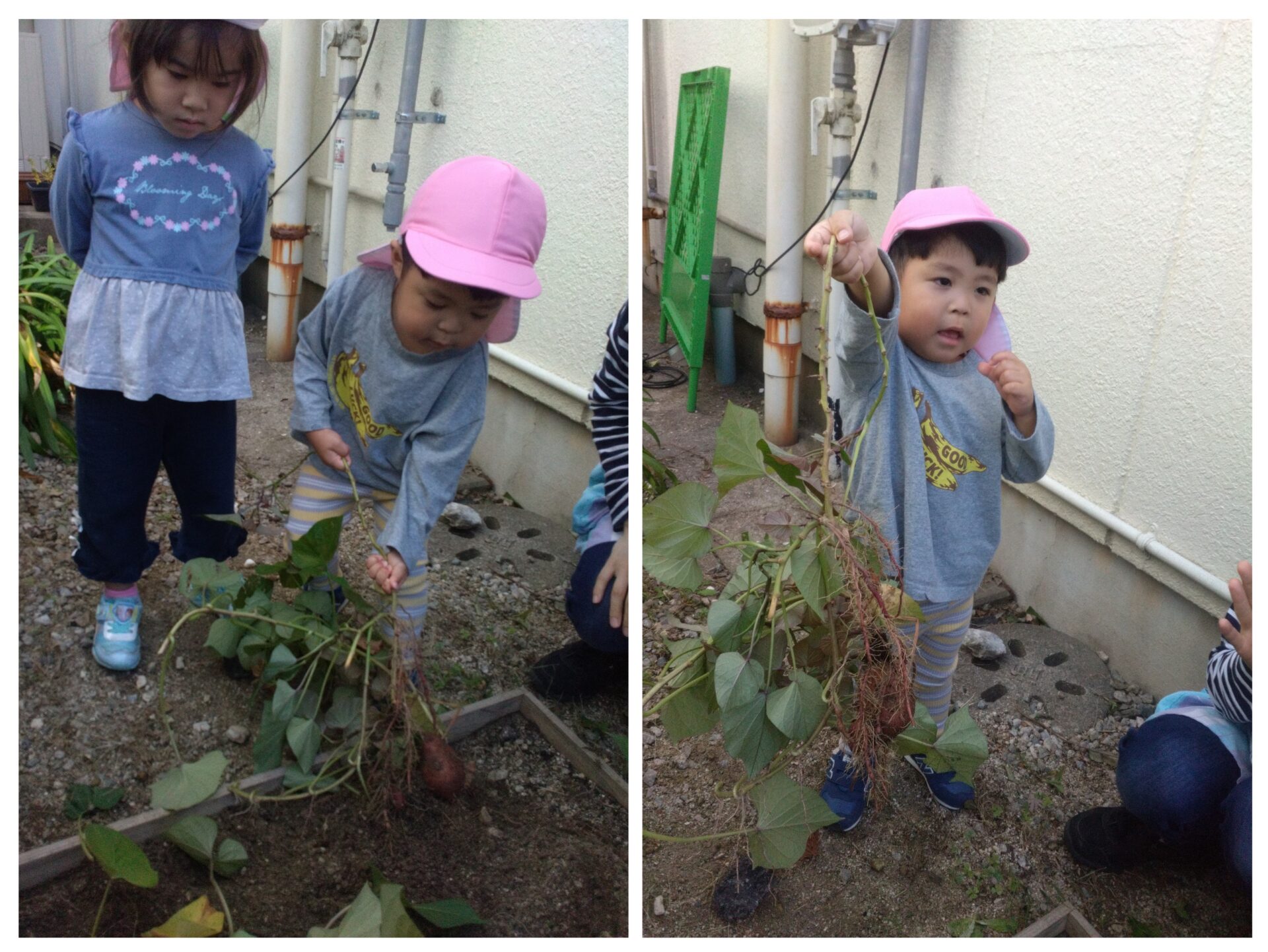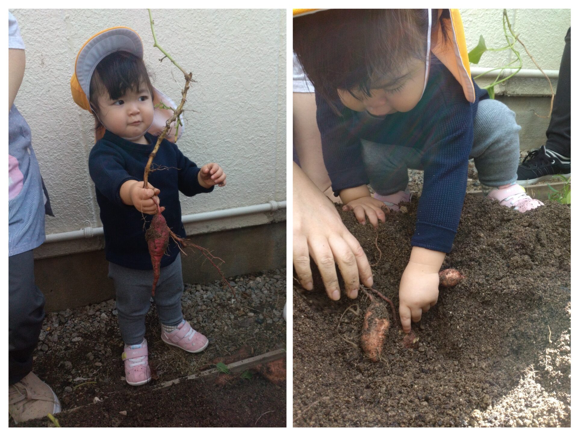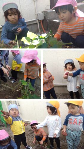 最初は何が出てくるのかと見ていた子どもたちも、芋が見えてくると、ツルを引っ張ったり土を掘ったりと楽しんでいましたよ😄