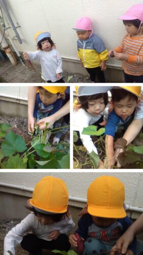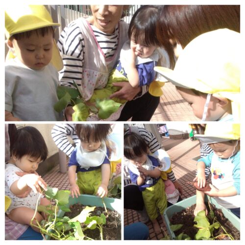うみ組(0歳児)用に…とプランターでも芋を育ててみましたよ♬