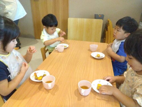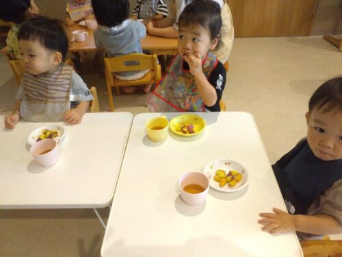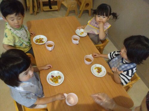 芋掘りしたことを話しながら、みんなで一緒に食べるおやつは格別ですね✨