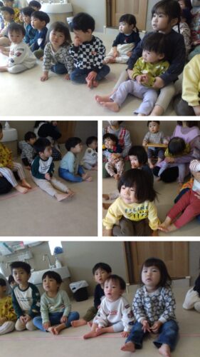 ”あわてんぼうのサンタクロース”を体を揺らしながら口ずさむ子どもたち♬
