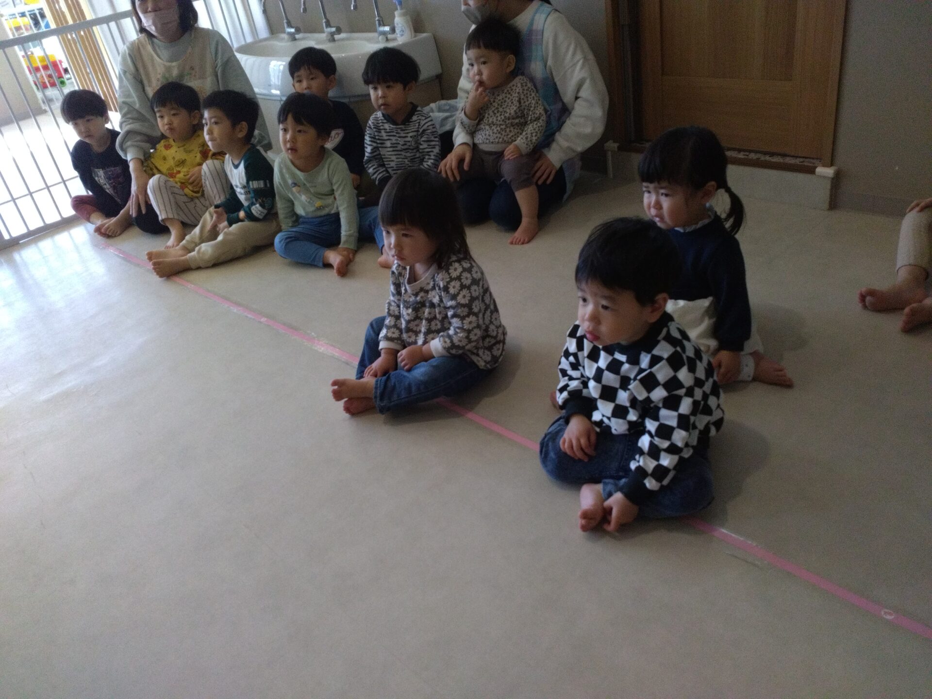 最初は緊張して固まる子どもたち😶