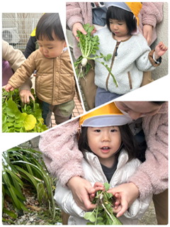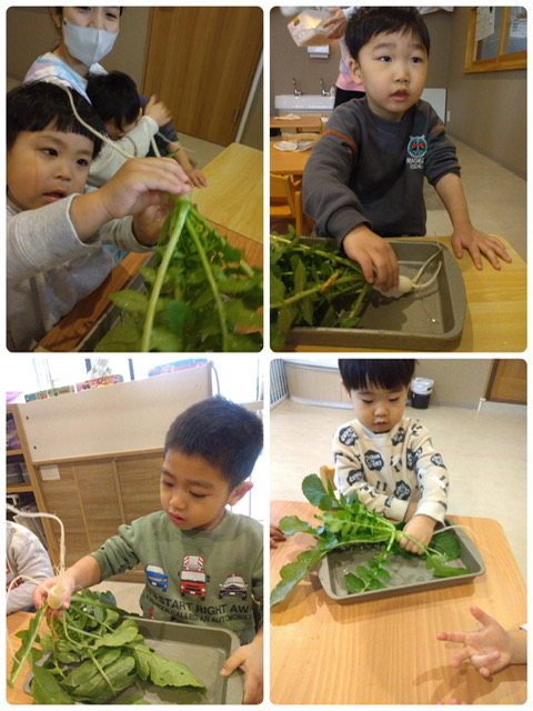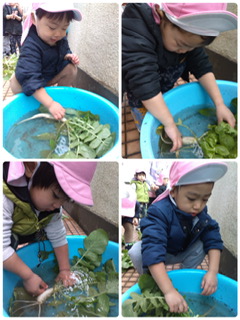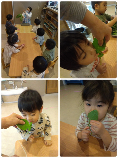 あめ組(2歳児)においをかいだり、触ってみたり、じっくり観察しましたよ❣