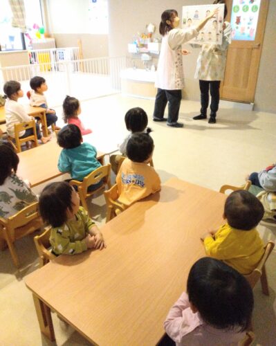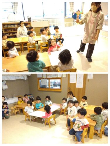 ひなまつりについてのカードシアターやパネルシアターに興味津々な子どもたち😊