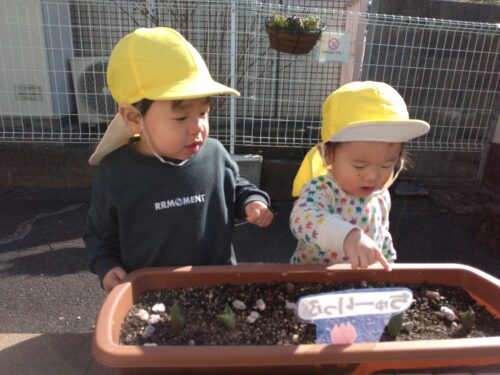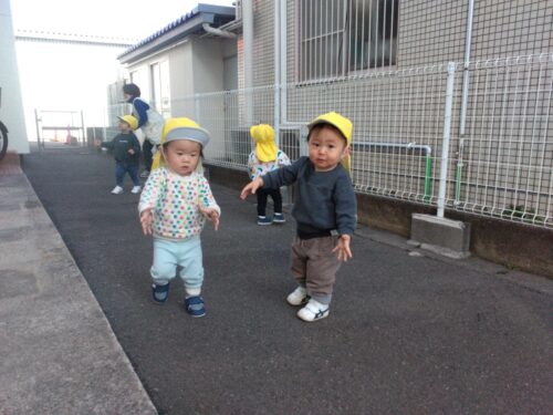 ハイハイをしていたお友だちもしっかり歩けるようになり、戸外遊びを楽しんでいます😊