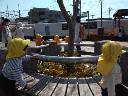 通りかかった、おじいさんに声をかけられるお友だち…固まりながらも、お顔を見てちゃんとお話を聞いていました😊