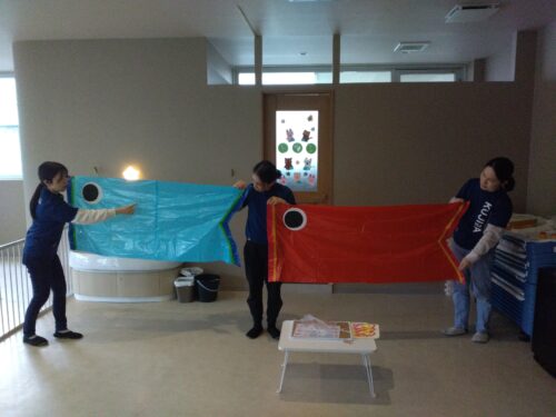 みんなで作ったこいのぼりは、保育園に飾っていますので、