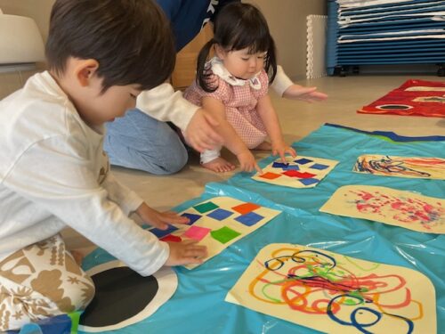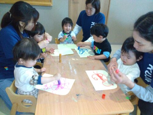 画用紙からはみ出すほどダイナミックにお絵描きを楽しんでいましたよ。