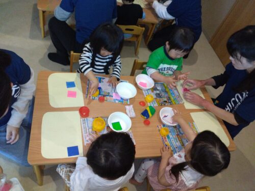 そこでみんなでうろこを飾りつけして、素敵なこいのぼりに変身させてみることにしました。