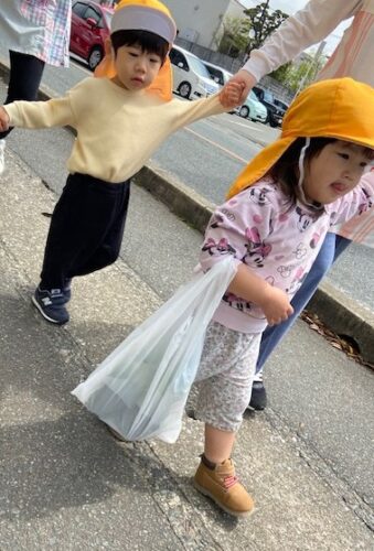 買い物が終わったら、苗を友だちと交代しながら持って帰ります。