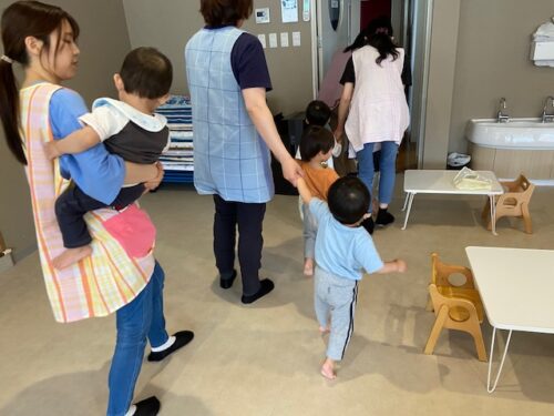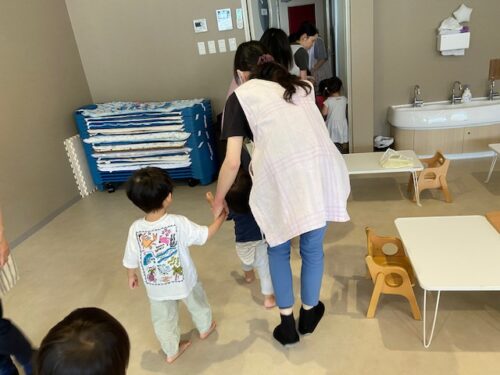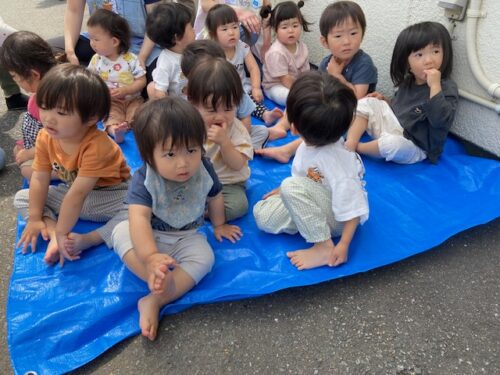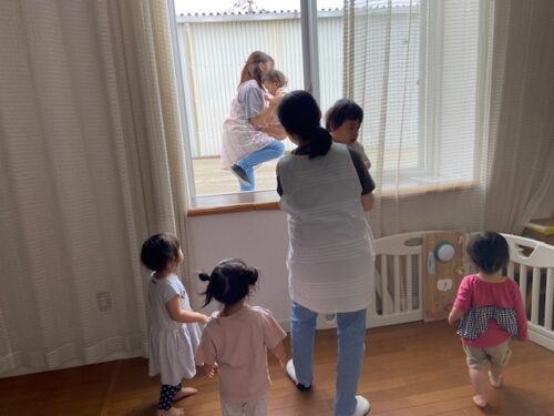 あめ組(2歳児)は小さなお友だちが窓から避難する様子を見て順番を待ってくれていました😊