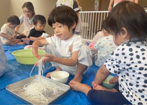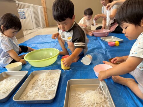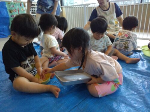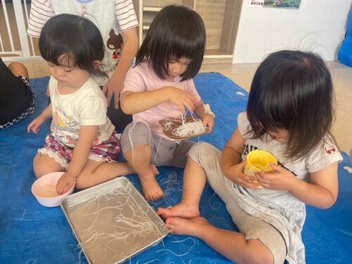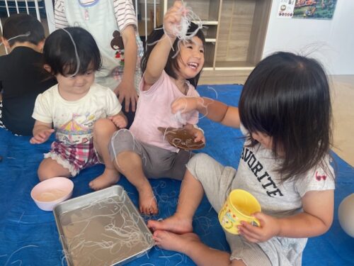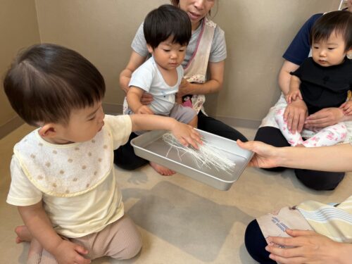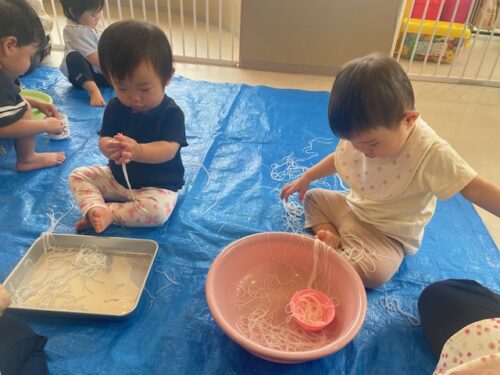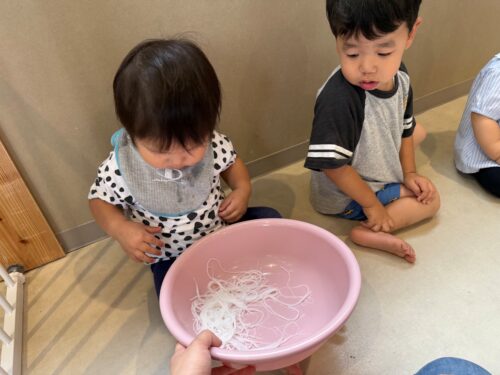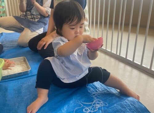感触遊び!今回は、はるさめを使って遊んでみました。