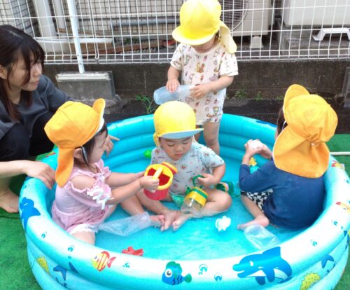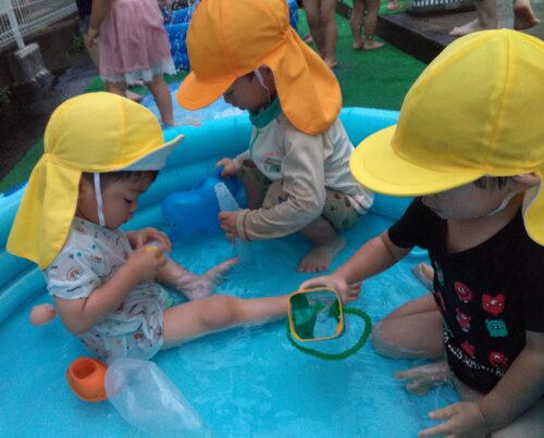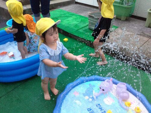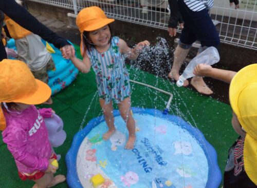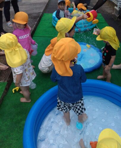 思い思いの水あそびに、はしゃいで遊ぶ子どもたち! 夢中になって遊ぶ子どもたち!