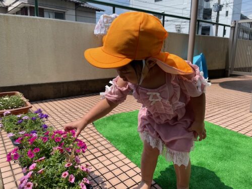 プールあそびの途中で思いもしない来客に大喜びでした。
