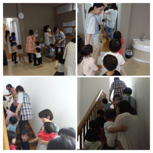 さぁ、1階の保育室は危なくなってきた想定で、2階避難します。